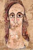 La pintura carecía de naturalidad y las figuras se representaban en forma esquemáticas y en posturas rígidas. Se utilizaban colores intensos y no aparecían paisajes de fondo.